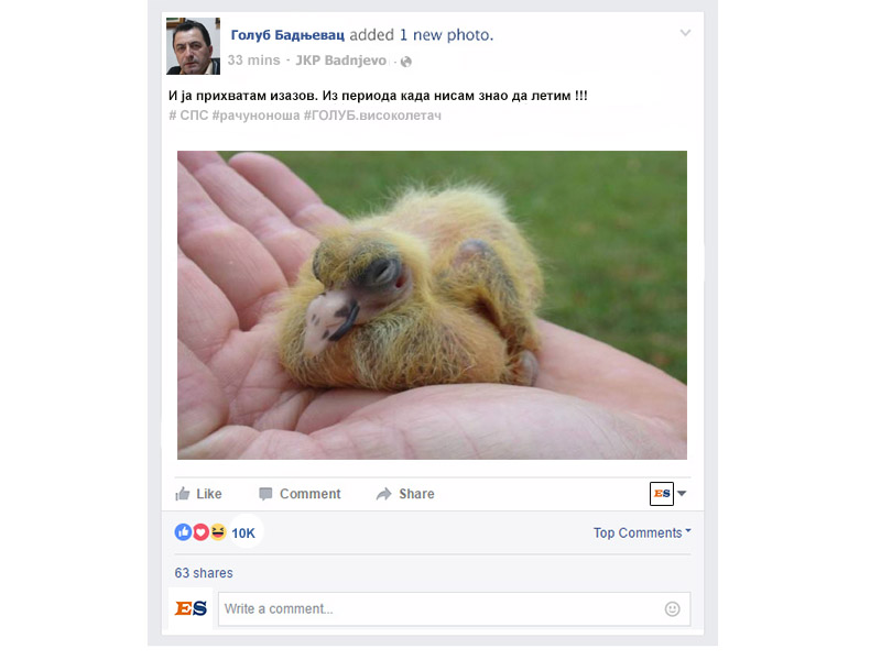 Golub Badnjevac je „izvukao“ fotku baš onu kada je bio majušni ptić.