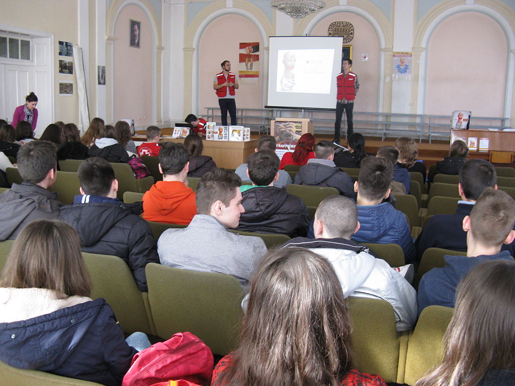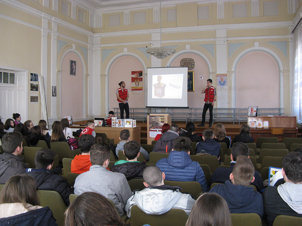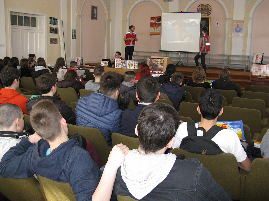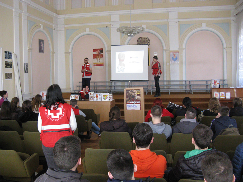 Posle veoma uspešnog seminara koji je nedavno, u saradnji sa Crvenim krstom Srbije, organizovan za nove edukatore, Crveni krst Negotin je nastavio sa realizacijom Progama „Borba protiv trgovine ljudima“. Sa novostečenim znanjima, na informativnoj radionici organizovanoj u Negotinskoj gimnaziji za učenike I-2, II-1, II-2, II-3 i II-4 razreda, predavanja su održali volonteri CK, Aleksa Rajković, Veljko Petrović i Mladen Stanković. Mladi volonteri su znanje stečeno na nedavno održanom seminaru u Crvenom krstu Negotin preneli na svoje vršnjake, kako bi ih upozorili na pojavu trgovine ljudima koja se dešava svuda u svetu pa i u našoj sredini. Učenike ovdašnje Gimnazije volonteri su edukovali kako da prepoznaju namere trafikanata i koje mere opreza da preduzmu kako se ne bi našli u kandžama trgovaca ljudima. Volonteri su im svoje znanje preneli na najbolji mogući način, a učenici su s pažnjom pratili predavanje i aktivno učestvovali u radu.