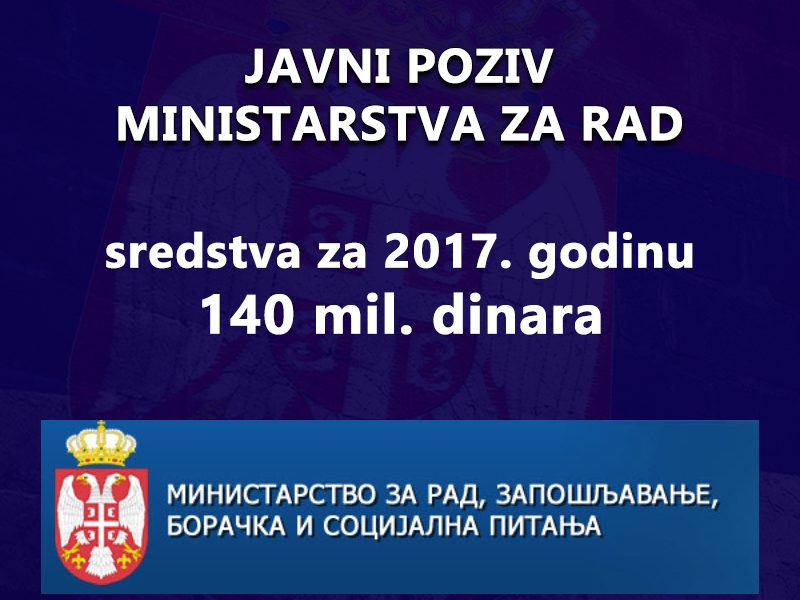 Autor Suzana M. JovanovićMinistarstvo za rad, zapošljavanje, boračka i socijalna pitanja raspisalo je javni poziv za dodelu sredstava za poboljšanje uslova rada u preduzećima za profesionalnu rehabilitaciju i zapošljavanje osoba sa invaliditetom u 2017. godini. Po ovom javnom pozivu ministarstvo je obezbedilo 140 miliona dinara.