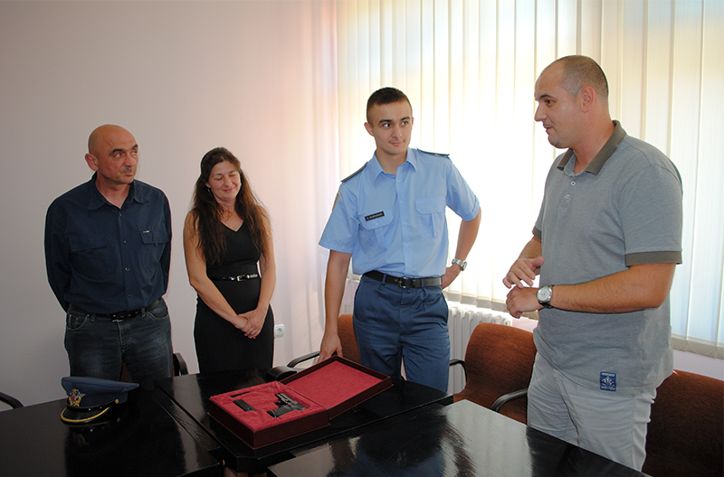 Prethodno, Stefan Marković, rođen 1994. godine u Negotinu, kao i svi najuspešniji kadeti 138. klase po vidovima i službama, nagrađen je pištoljem sa posvetom prilikom promocije u prvi oficirski čin potporučnika na svečanosti u Beogradu. Taj, ali i poklon sa obeležjima rodnog grada koji mu je uručen na prijemu u Negotinu, za Stefana je od velike važnosti.