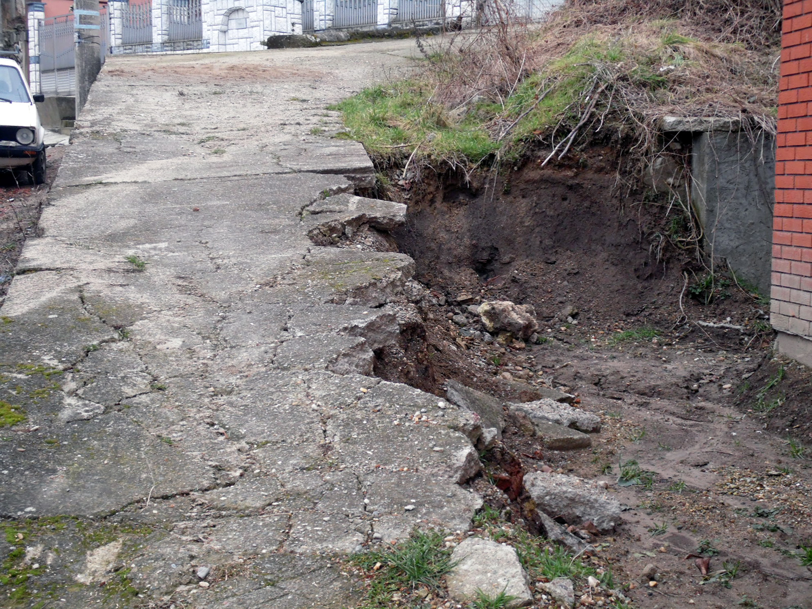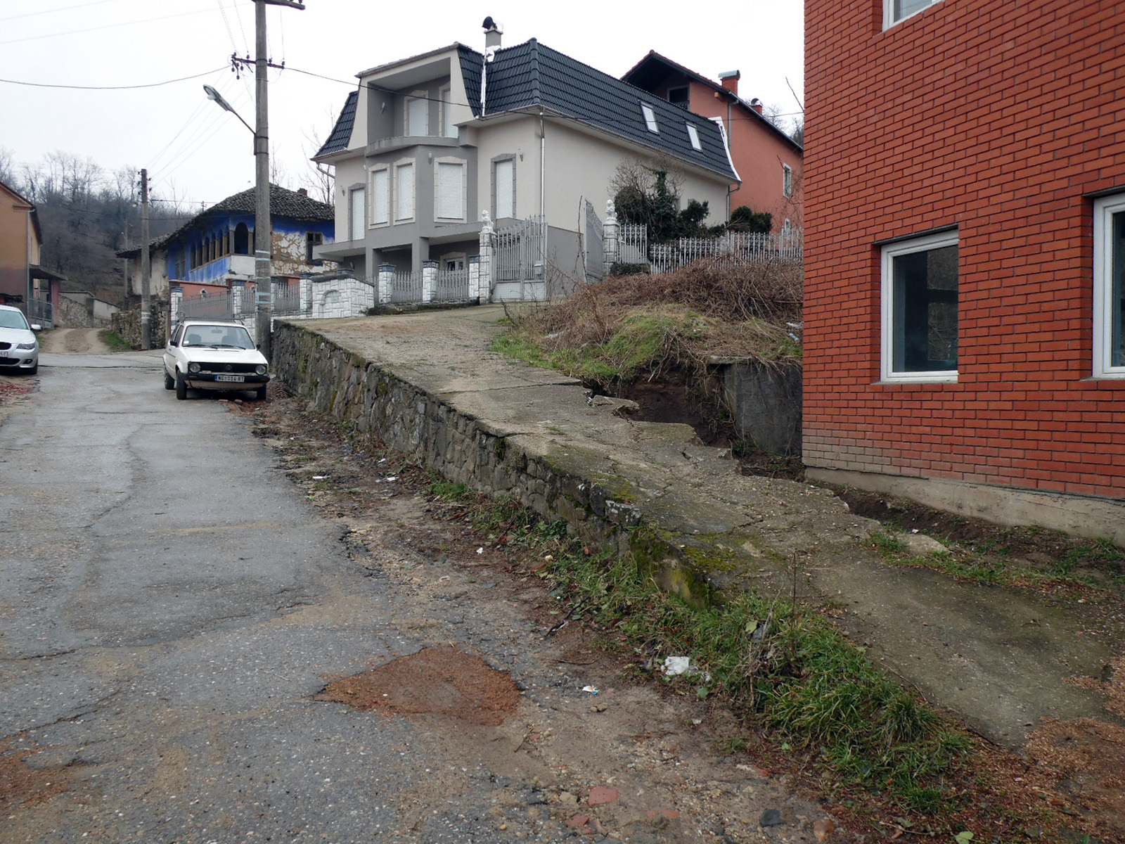 „Toga dana put do dvorišta, tačnije staza praktično je nestala. Iskoristili su priliku dok smo bili u inostranstvu i toga dana porušili put do dvorišta i time onemogućili bilo kakav pristup dvorištu. Srušen je i potporni zid, koji je dodatno zakomplikovao situaciju što se sigurnosti našeg objekata tiče. Osim toga, što nam je kuća na brdovitom tlu, potporni zid je igrao veliku ulogu u stabilnosti našeg doma. Nakon njegovog rušenja, počela su klizišta a što je još neprihvatljivije, fasada i zid na jednom delu objekta počeli su da pucaju.“