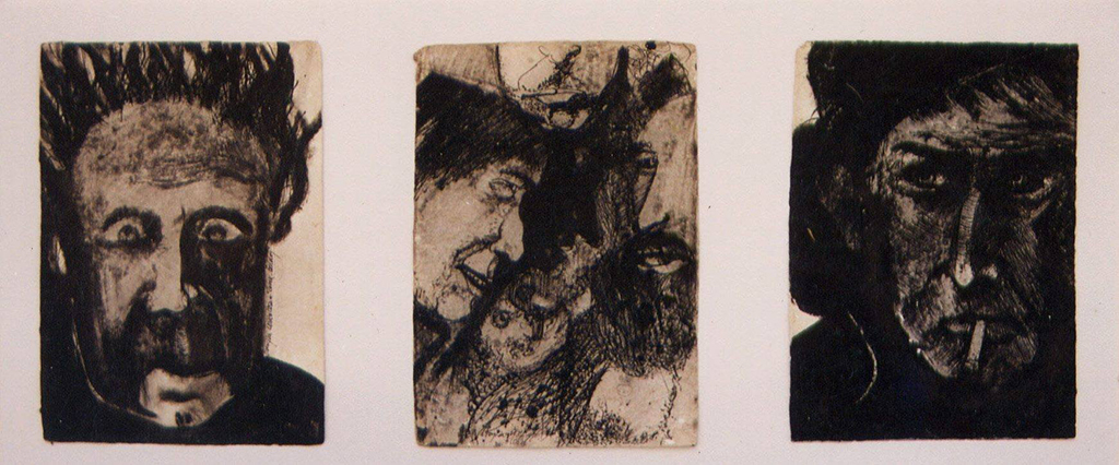 Ovo je jedan svojevrstan triptih nekoliko ljudskih ekspresija. Sa leve strane vlada mešavina velikog straha, ponora i patnje, možda i ludosti. Celu tu teoriju naglašavaju širom otvorene oči koje asociraju na užas. U središnjem crtežu vidimo mir, blagostanje, možemo da osetimo prijatnu tišinu i sreću – potpuni kontrast od prethodnog crteža koji unosi nemir i strepnju kod posmatrača. U trećem crtežu vlada potpuna tama, ne samo u likovnom pogledu, već i u ekspresiji i mimici lica. Zagonetka čije je rešenje pokriveno velom misterije predstavljene u mračnim tonovima protagoniste i u veoma podozrivom pogledu koji se širi i fiksira van vidokruga posmatrača.