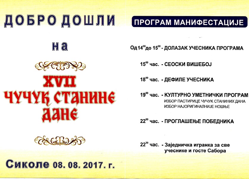 U njenom rodnom Sikolu i ovog 8.avgusta okupiće se brojna kulturno – umetnička društva da kroz izvornu muziku, igre, narodno stvaralaštvo sačuvaju uspomenu na heroinu Čučuk Stanu. Selo Sikole ovom manifestacijom šalje poruku da nije zaboravilo svoje pretke i da čuva tradiciju.