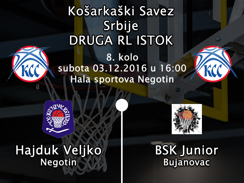 Utakmica između Hajduk Veljka i BSK Juniora iz Bujanovca igra se u subotu od 16 sati u negotinskoj Hali sportova.
