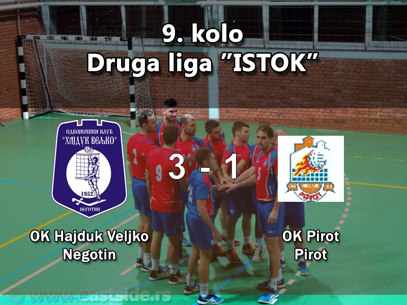 Negotinski odbojkaši nakon poraza u Prokuplju vratili su se na pobednički kolosek. U devetom kolu na svom terenu rezultatom 3:1 savladali su ekipu Pirota. Gosti su dobili prvi set na utakmici sa 25:23, ali su u preostala tri slavili odbojkaši Hajduk Veljka. U drugom setu bilo je 25:21 za Negotince, treći set završen je rezultatom 25:22, četvrti 25:20.