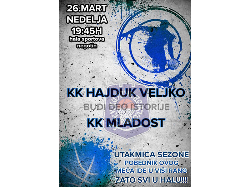 Košarkaši Hajduk Veljka, uz parolu “BUDI DEO ISTORIJE-SVI U HALU”, pozvali su navijače da u što većem broju u nedelju ispune Halu sportova. Pomognu im da ostvare najvažniju pobedu u sezoni. I zajedno proslave ulazak u viši rang.