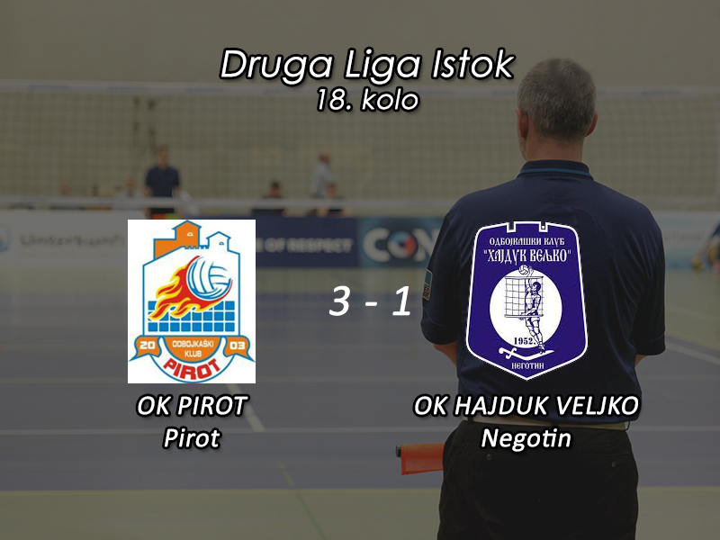 Autor Bojan ŽivanovićOdbojkaši Hajduk Veljka poraženi u Pirotu rezultatom 3:1, poslednjem kolu Druge lige Istok. Negotinski odbojkaši sezonu završili na trećem mestu sa 14 pobeda i četiri poraza. Odbojkašice ostvarile novu pobedu.