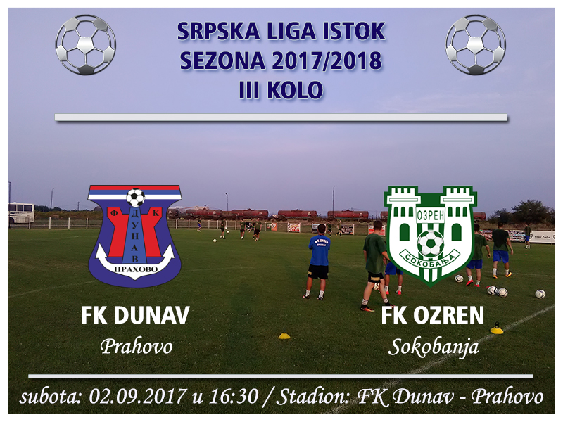 Autor Bojan ŽivanovićFudbaleri Dunava u trećem kolu Srpske lige Istok, u subotu od 16:30 sati na stadionu u Prahovu dočekuju Ozren iz Sokobanje.