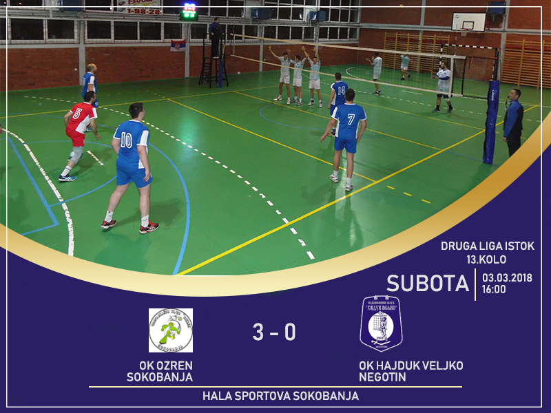 I odbojkaši Hajduk Veljka poraženi su ovog vikenda. U okviru 13. kola negotinski odbojkaši poraženi su od Ozrena u Sokobanji sa 3:0.