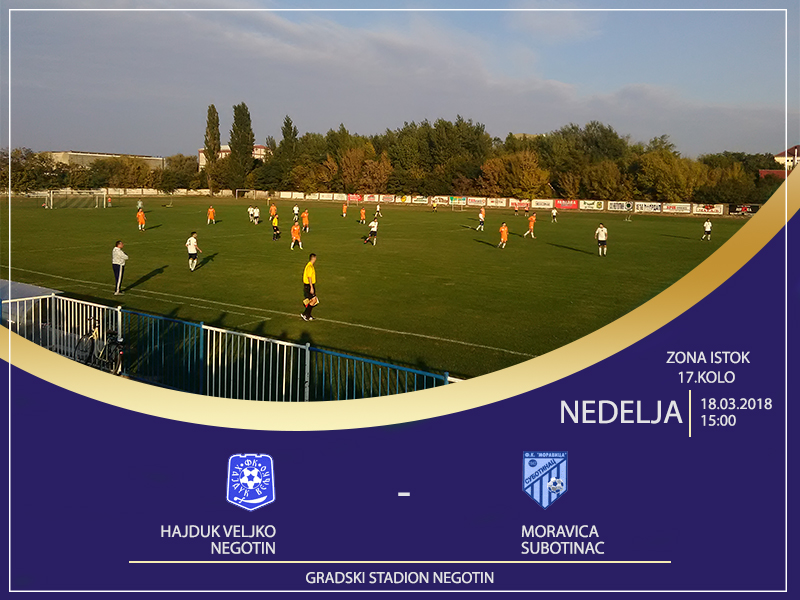 Autor Bojan ŽivanovićFudbaleri Hajduk Veljka u nedelju od 15 sati na Gradskom stadionu u Negotinu sastaće se sa Moravicom iz Subotinca u 17. kolu Zone Istok. Negotinski zonaš trenutno na četvrtom, a ekipa iz Subotinca na trećem mestu.