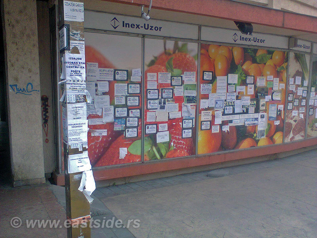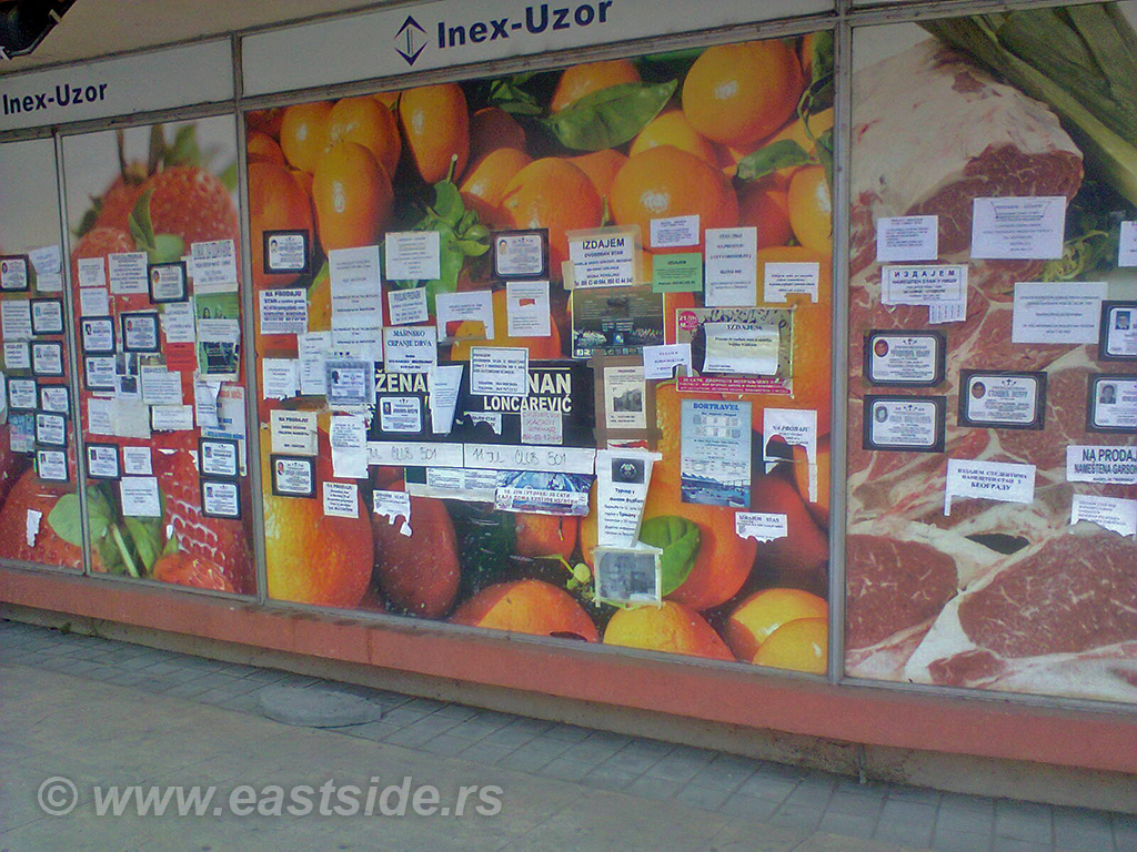 Tako imamo oglase o kupovini, prodaji i izdavanju stanova i sve to „lepo“ objavljeno na izlozima zgrada. Osim toga, uz dužno poštovanje preminulima, posmrtnice takođe pronalaze mesta na izlozima. Da li je svemu tome mesto baš na izlozima?