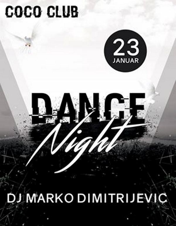 Coco Club i DJ Marko Dimitrijević pozivaju vas večeras na "Dance Night" žurku. Za dobar provod zadužen je upravo poznati negotinski DJ Marko Dimitrijević, a na večerašnjem repertoaru biće obrade najvećih dens hitova.