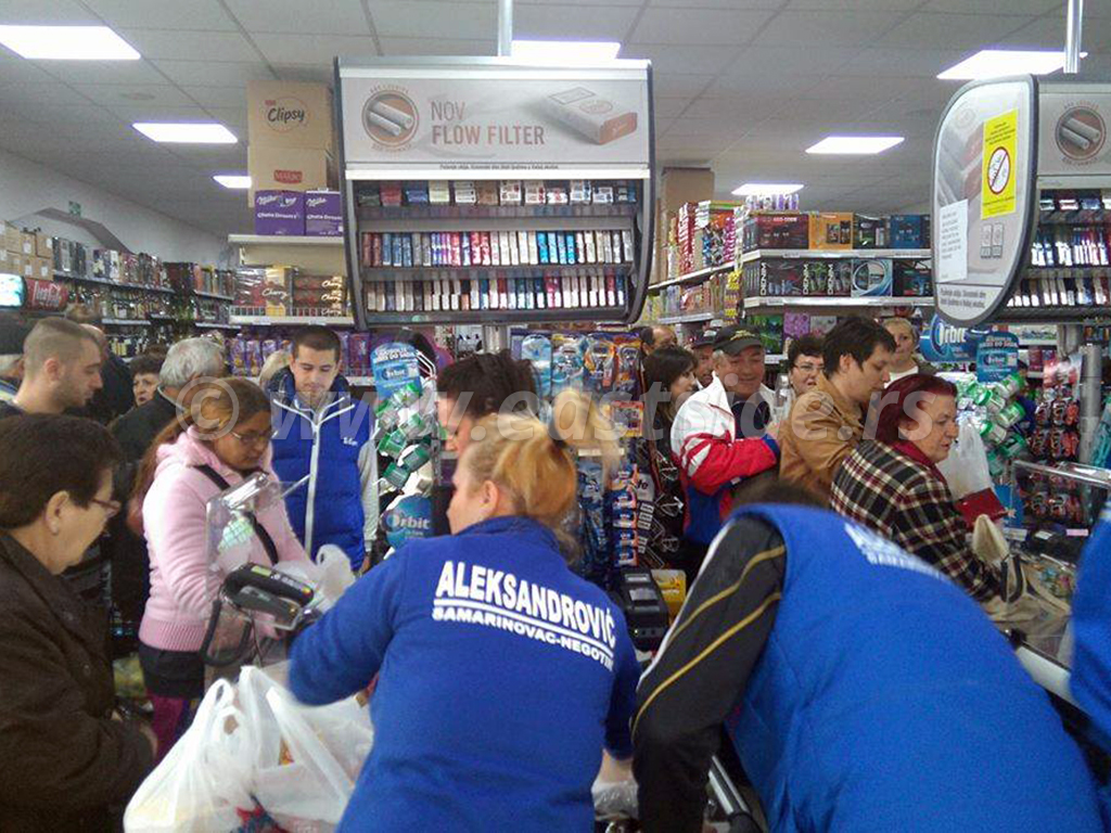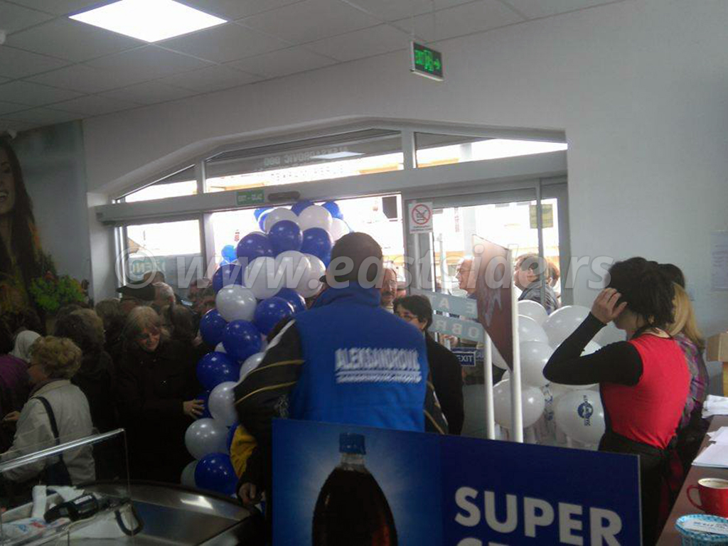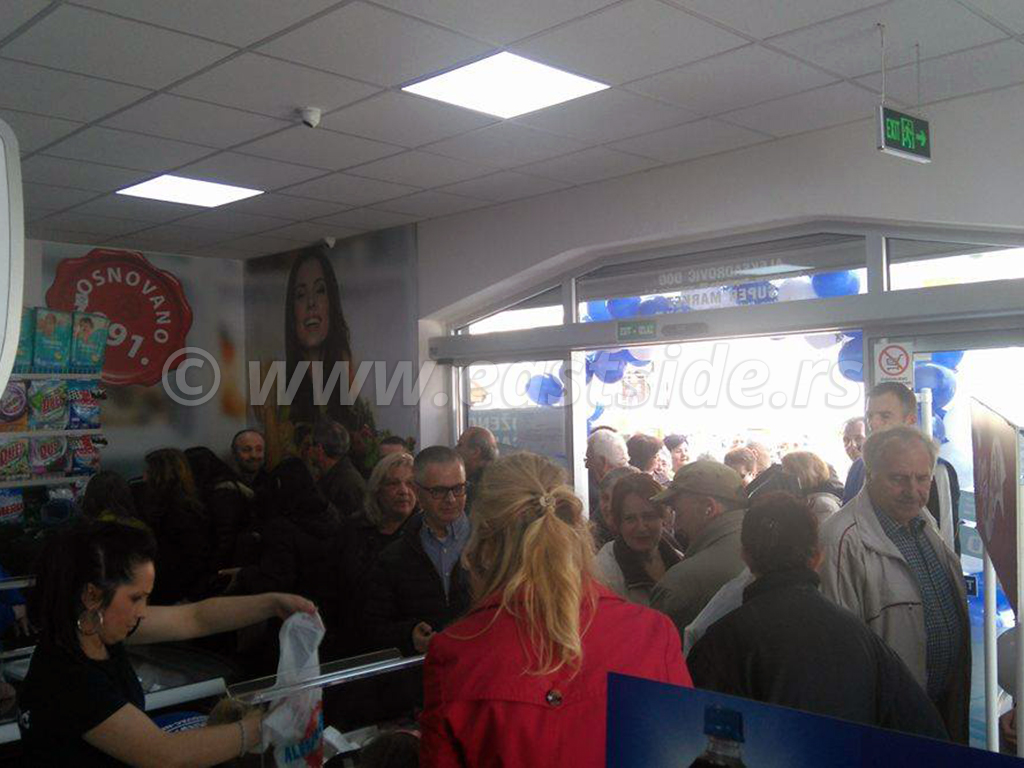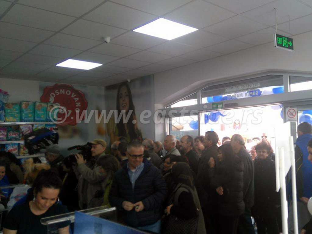 Tačno u 11 časova novi Aleksandrović market započeo je sa radom, a prvi kupci mogli su se pohvaliti i vrednim poklonima kojima je ova firma darivala najbrže kupce. Osim ovog poklona svi potencijalni kupci mogli su da se posluže sokovima, kao i kiflicama, suhomesnatim proizvodima i kolačima koji su bili postavljeni u vidu švedskog stola ispred ulaza u market.