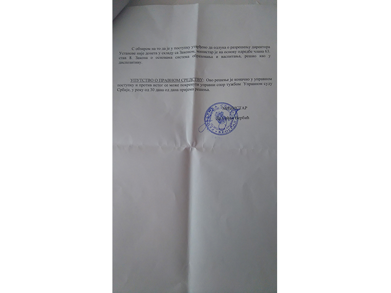 Sve njihove odluke su donete nezakonito i suprotno odredbama zakona, što se lako može videti i u novom(drugom po redu) Rešenju ministra Verbića.