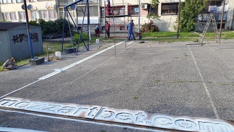 Kompanija Mozzart započela je radove na terenu koji je u katastrofalnom stanju a osim novog terena ova kompanija poklanja i dve profesionalne konstrukcije koševa.