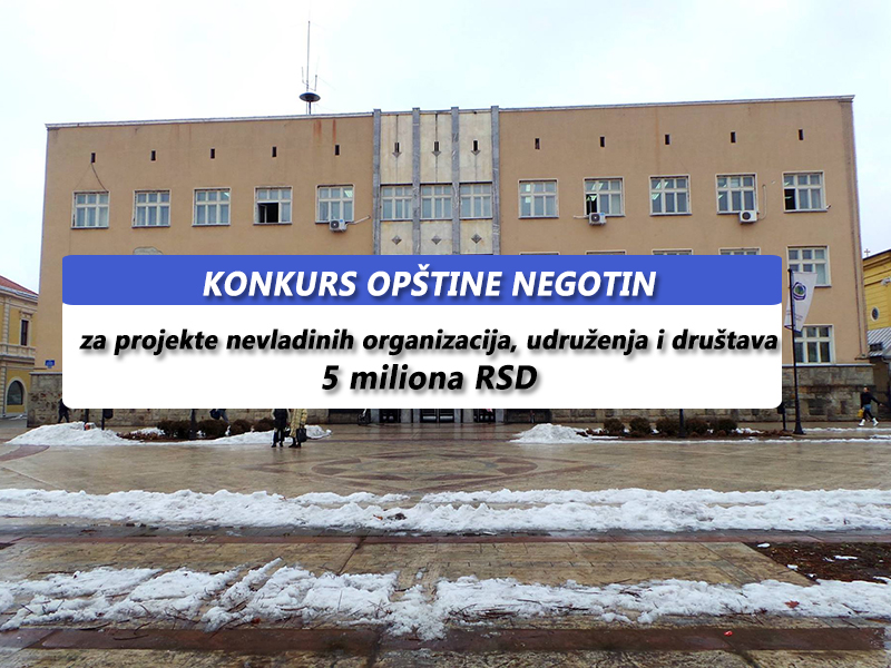 Autor Suzana M. JovanovićOpština Negotin raspisala je danas konkurs za raspodelu sredstava za projekte nevladinih organizacija, udruženja i društava. Za ove namene iz opštinske kase, odlukom o budžetu za tekuću godinu, planirano je ukupno pet miliona dinara.