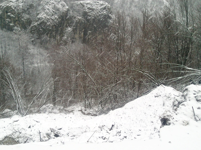 Odron i klizište na ovom delu puta u poslednje vreme napreduju, a bojazan da će napredovati još u većim razmerama je upravo sneg koji pada već nekoliko dana. Podsećanja radi, pucanje asfalta i klizište pojavilo se nakon poplava i obilnih padavina u oktobru prošle godine, a materijal za sanaciju postavljen je već duži vremenski period.