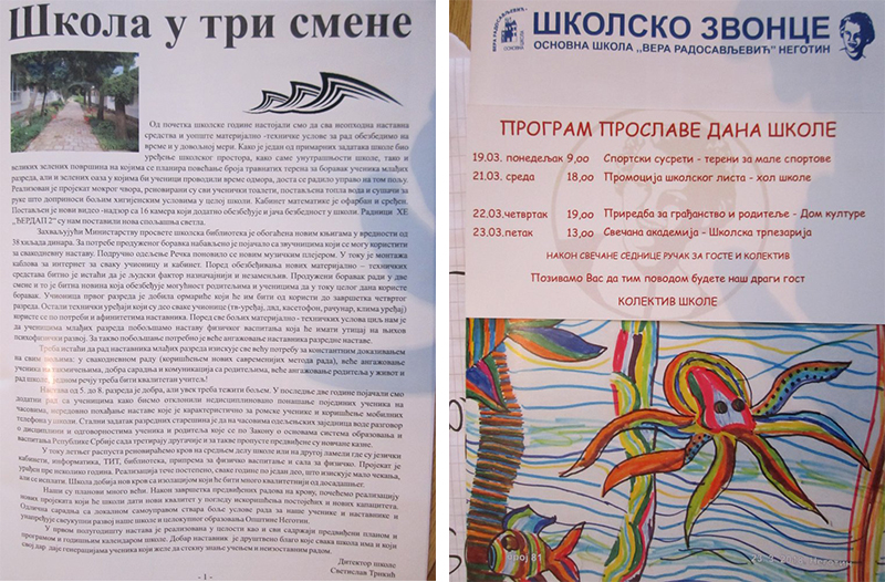 Između ostalog, škola je tradicionalno promovisala svoj list pod nazivom „Školsko zvonce“ u školskom holu protekle nedelje. Prezentacija je okupila veliki broj roditelja, koji su uživali u predstavi koju su pripremili za njih učenici 7. i 8. razreda, a koja je bila pripremljena pod pokroviteljstvom nastavnice Sanje Ilić.
