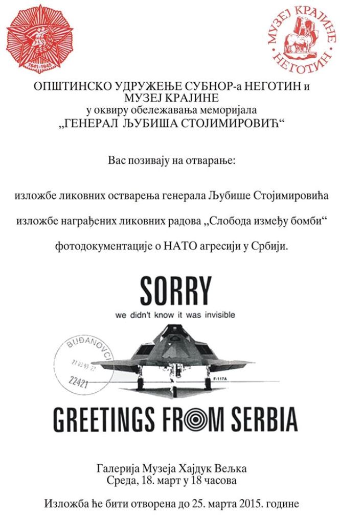 Naime, u galeriji Muzeja "Hajduk Veljka Petrovića", organizatori najavljuju otvaranje izložbe likovnih ostvarenja generala Ljubiše Stojimirovića, otvaranje izložbe nagrađenih likovnih radova "Sloboda između bombi", kao i fotodokumentacije o NATO agresiji na Srbiju, koja je počev od 24. marta 1999. godine, punih 78 dana bila izložena svakodnevnim vazdušnim napadima zemalja članica NATO alijanse.