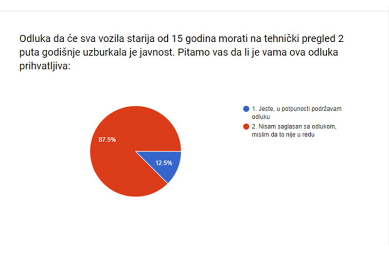 Velika većina sugrađana ne odobrava odluku da vozila starija od 15 godina idu dva put godišnje na tehnički pregled.