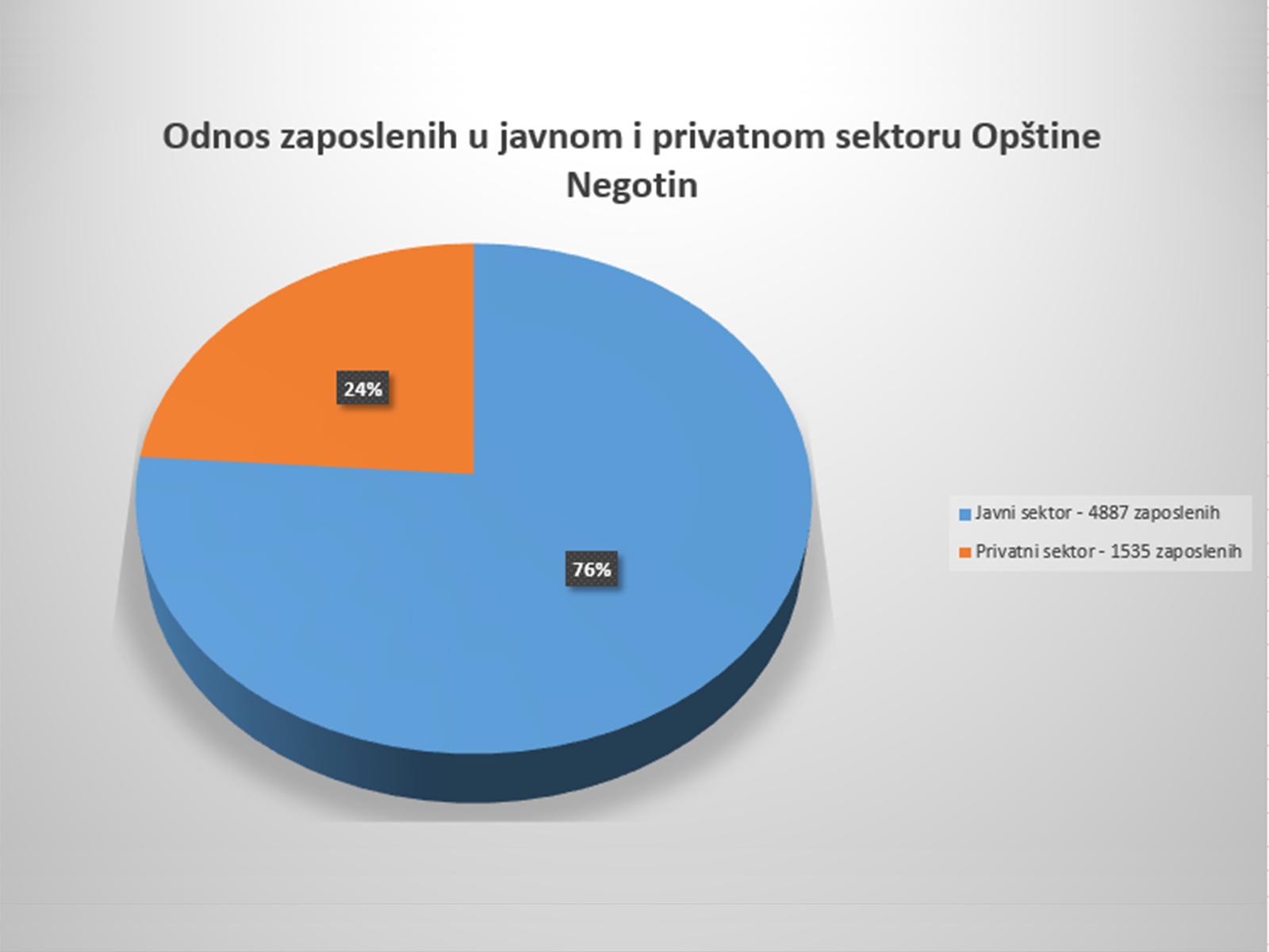 Nizak životni standard predstavlja posledicu nezaposlenosti u svakoj opštini pa tako i u opštini Negotin, ali i niske plate i visoke cene koje su u konstantnom porastu. Dakle, visoka stopa nezaposlenosti, smatra se direktnom posledicom “mrtve privrede” tj. ugašenih fabrika i preduzeća koje su nekada imale veliki broj zaposlenih radnika. Problem ove prirode manje je izražen i upečatljiv u većim gradovima (Beograd, Novi Sad, Kragujevac) iz prostog razloga, jer su bitnije i društveno značajnije firme odnosno preduzeća stacionirane u tim mestima. Istraživanje, kao i poslednja informacija o broju zaposlenih koja je bila dostupna javnosti pokazuje da je početkom tekuće godine u opštini Negotin bilo 6.422 zaposlena, od kojih je većina radila u državnom sektoru, njih 4.887, dok je u privatnom sektoru bilo znatno manje 1.535 zaposlenih. Tako da se u popunjenim anketama, navodi da je za trenutnu lošu privrednu i ekonomsku situaciju na teritoriji opštine Negotin, glavni uzrok nedostatak radnih mesta u privatnom sektoru, a da je previše nepotrebnih radnih mesta u javnom sektoru, a naročito u administraciji, koja opterećuje lokalni budžet. Iako se ovaj problem smatra kao državni, on je ipak uočljiviji na manjim mestima gde se “svi znaju”.