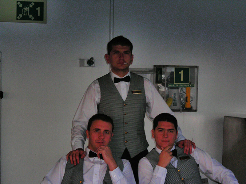 “ Započeo bih sa manama ovog poziva, ali pre svega što ih je manje nego vrlina. Jedna od stvari koja može da zasmeta kada je u pitanju rad na brodu jeste povezana sa neradnim danima kojih praktično nema. Međutim, to je u neku ruku i normalno jer se nakon šest meseci aktivnog rada odmara dva meseca. Kada su u pitanju prednosti ovog posla, na prvom mestu lestvice pozitivnih zbivanja postavio bih putovanja i razgledanja mesta i gradova za koje ste do tada čuli i videli samo u medijima. Recimo da neke gradove i države sasvim sigurno ne bih video da nisam bio na kruzeru. Los Anđeles, Majami, Čikago, San Dijego, Meksiko, Bahami, Belize, Jamajka, Karipska ostrva, džungle i lepote ambijenta Severne i Južne Amerike su samo deo mog ondašnjeg putešestvija. Zatim u Evropi sam proputovao čitav tok reka Majne, Rajne i Dunava sve do Crnog mora. Ređali su se gradovi poput Amsterdama, Ajndhovena, Anderlehta, Kelna, Nirnberga, Beča, Bratislave… Zaista, puno toga nezaboravnog i na samom brodu. Mnogo poznatih ličnosti iz sveta sporta, glume, ekonomije i drugih životnih priča i okruženja. Kada bismo radili onda bi to bio čist profesionalizam na najvišem mogućem nivou, ali kada bi usledio odmor onda smo to koristili da se zabavimo i provedemo. Šta reći, brodovi su sami po sebi ličili na kojekakve putujuće gradiće u kojima si živeo,radio, zabavljao se, sanjao a onda se svakog jutra budio na nekom drugom mestu.“