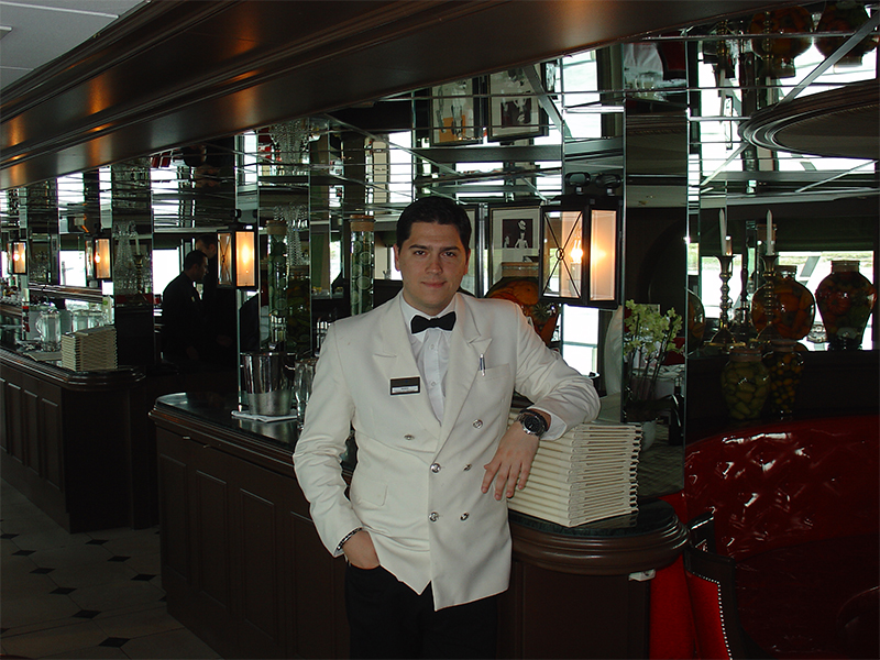 „Nakon završene Više hotelijerske škole i paralelnog rada u nekoliko hotela na crnogorskom primorju, pa i u našoj prestonici Beogradu (od kojih je najpoznatiji Hyatt Regency), opredelio sam se za sektor „Hrane i Pića“ i konkurisao za rad na prekookeanskom brodu. Tada sam dobio priliku da radim kao pomoćni konobar, govorimo o 2005. godini, do koje su Srbi na brod mogli otići samo sa hrvatskim pasošem, od te godine su dozvolili sa srpskim i ja sam bio u tom prvom talasu koji su otišli sa pasošem svoje zemlje. Od iskustva sam imao samo diplomu i par meseci rada u kafiću u Beogradu ne računajući praksu u Crnoj Gori. Međutim, sa sobom sam poneo ono najneophodnije za bavljenje ovim poslom a to su vera, srdačnost i entuzijazam. Nakon intervjua sa nadređenim i potvrdnog odgovora dobio sam posao i priliku da se dokažem. Za mene je već to bio maltene pa ostvaren jedan od zacrtanih zadataka, a odlazak u Sjedinjene Američke Države predstavljao je enorman uspeh u dosadašnjoj ne baš bogatoj hotelijerskoj karijeri.“