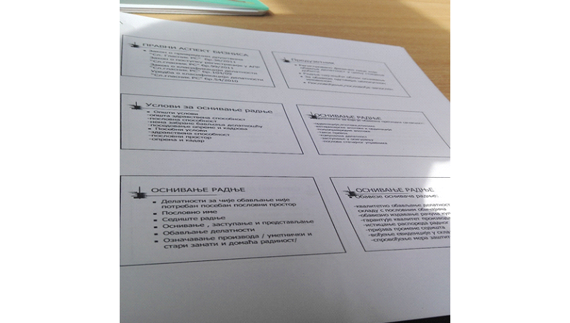 Prezenteri su bili kolege iz filijale Bor, koji su prisutne uvodili u svet preduzetništva ukazujući, koje su početne greške pri osnivanju preduzeća, da li postoje rizici, koliko i čemu su namenjena sredstva Nacionalne službe, ostale subvencije opštine, subvencije iz evropskih fondova.