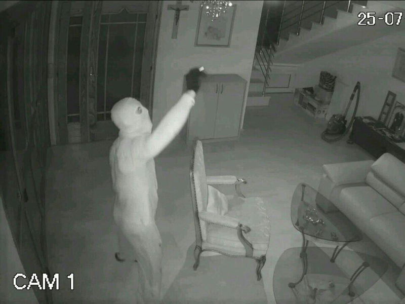 Na snimcima koje su u noći 25.jula snimile nadzorne kamere u domu Lazića jasno se vidi kako lopovi, potpuno opremljeni, jedan sa rancem na leđima ulaze u kuću. Prvi, međutim, nije primetio kamere, ali njegov saučesnik jeste, upozorava ga, ovaj stavlja „fantomku“ na lice, razbija prvo jednu, a onda i ostale kamere. Deo tih snimaka Ivan Lazić ustupio je i ES portalu.