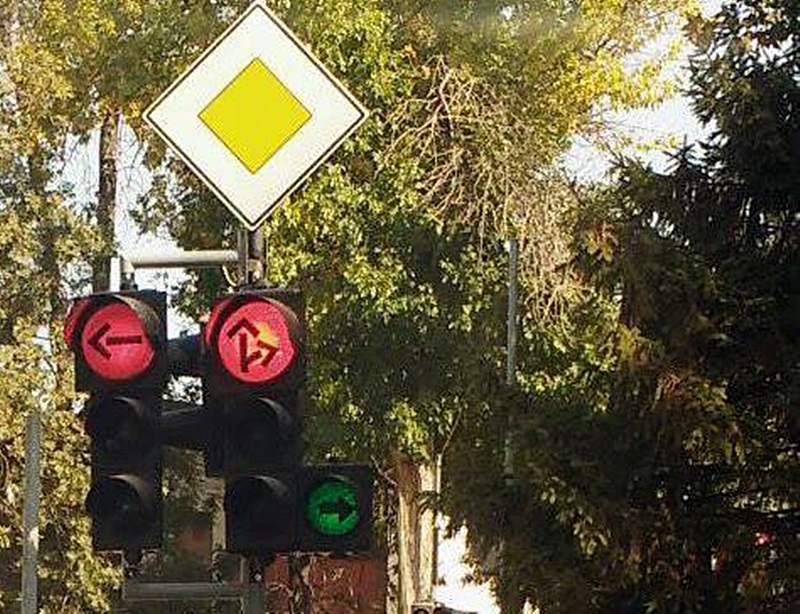 Direkcioni semafor kod zgrade komiteta, uveden zbog zakonske obaveze da se režim saobraćaja reorganizuje zbog polaganja vozačkih ispita, od nedavno ponovo ima opciju za – uslovno desno.