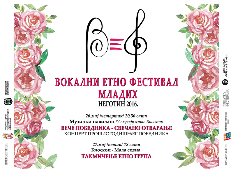 Vokalni etno-festival mladih –VEF koji sa velikim uspehom organizuje Kreativno udruženje NEGO već treću godinu u nizu, imaće više od 130 učesnika. Izvođači stižu iz sedam srpskih gradova i zemalja bivše Jugoslavije, što ovoj jedinstvenoj smotri mladih vokalnih izvođača daje međunarodni karakter. Dakle, Negotin, sa učesnicima koji će braniti boje muzičkog grada domaćina, ugostiće izvođače iz Kraljeva, Smedereva, Beograda, Banja Luke, Brčkog, Tetova i Kolašina. Nastupe 11 vokalnih etno grupa, sedam iz Srbije i četiri inostrane, pratiće i vrednovati žiri koji će ove godine raditi u sastavu: Biljana Krstić, Dragomir Stanojević i Zoran Bogdanović. Takmičarski dan VEF-a je petak, 27. maj. Muzičko nadmetanje se priređuje na Maloj sceni bioskopa Krajina i počinje u 18. sati. Prethodiće mu dan svečanog otvaranja Vokalnog etno festivala mladih – VEF 2016. Biće to u četvrtak, 26. maja, u 20 i 30 sati, u Muzičkom paviljonu u centru grada, (u slučaju kiše, publika će otvaranje moći da prati u negotinskom Bioskopu). Po svečanom otvaranju, sledi program pod nazivom Veče pobednika u okviru koga će nastupiti prošlogodišnji laureat VEF-a, a to je Etnomuzikološki odsek SMŠ „Petar Konjović“ iz Sombora sa dirigentom Ivanom Madžarac.