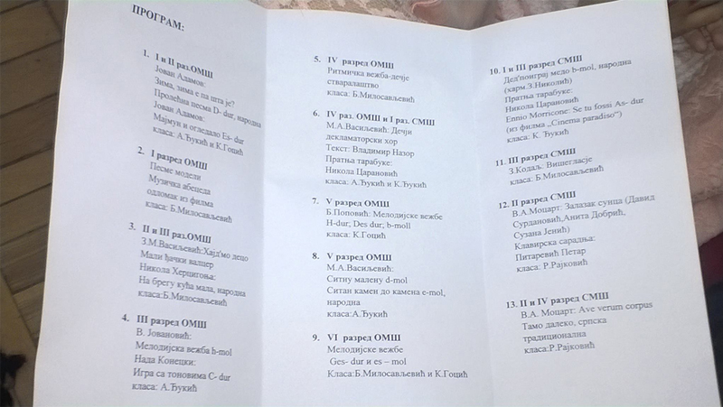 Đaci osnovne i srednje Muzičke škole „Stevan Mokranjac“ prikazali su muzičko umeće usklađeno sa uzrastom, a u nastavnicima: Bobanu Milosavljeviću, Kristini i Aleksandri Đukić, koja je potpisana i kao organizator programa, imali su potrebnu klavirsku saradnju. Publika je budno pratila nastupe na izvođačkoj sceni.