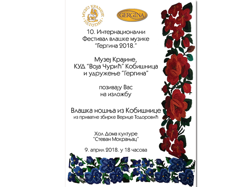 Autor Aleksandar MihajlovićU saradnji sa muzejom Krajine, KUD-om „Voja Čurić“ iz Kobišnice i udruženjem „Gergina“, održaće se izložba pod nazivom „Vlaška nošnja iz Kobišnice“ iz privatne zbirke gospođe Verice Todorović.
