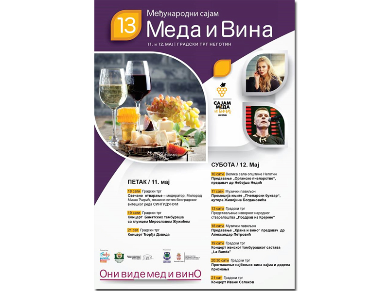 Trinaesti po redu sajam meda i vina biće svečano otvoren u petak 11. maja.