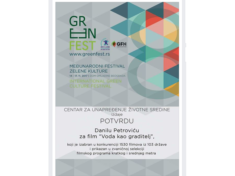 U okviru festivala „Gergina“ danas će u Domu kulture „Stevan Mokranjac“ biti prikazan film od 19 časova autora Danila Petrovića, a koji je podržan od Centra za unapređenje životne sredine.