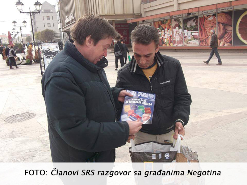 U međuvremenu, članovi Srpske radikalne stranke su u subotu u centru Negotina organizovali podelu letaka građanima i novog izdanja stranačkih novina „Velika Srbija“, a juče, u nedelju, 6. novembra i tribinu u obližnjem selu Mokranju, na kojoj su govorili članovi Saveta za informisanje Opštinskog odbora SRS Negotin.