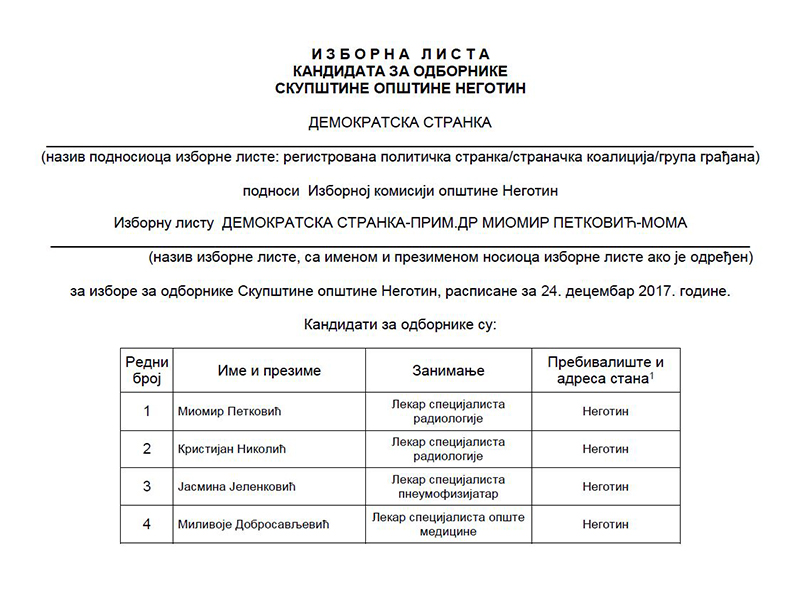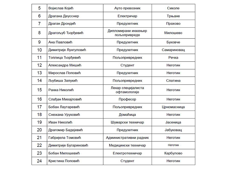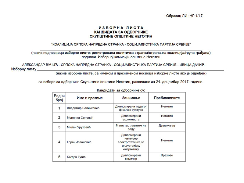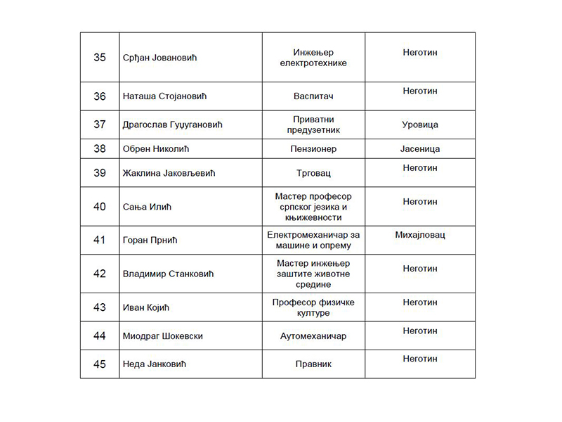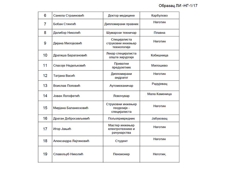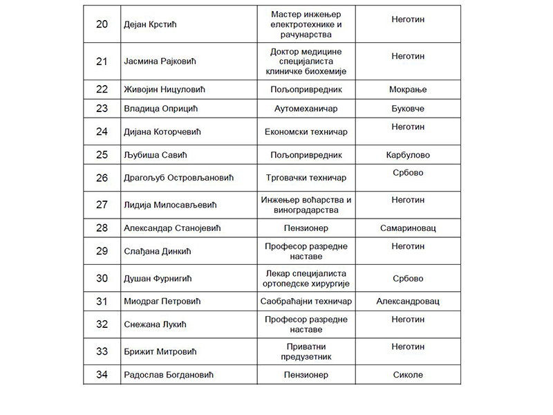 Evo i liste kandidata za SO Negotin SNS – SPS „NASTAVITI ZAPOČETO“