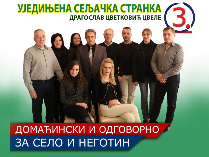 Lista Ujedinjene seljačke stranke nalazi se pod brojem 3 na glasačkom listiću za lokalne izbore u opštini Negotin.