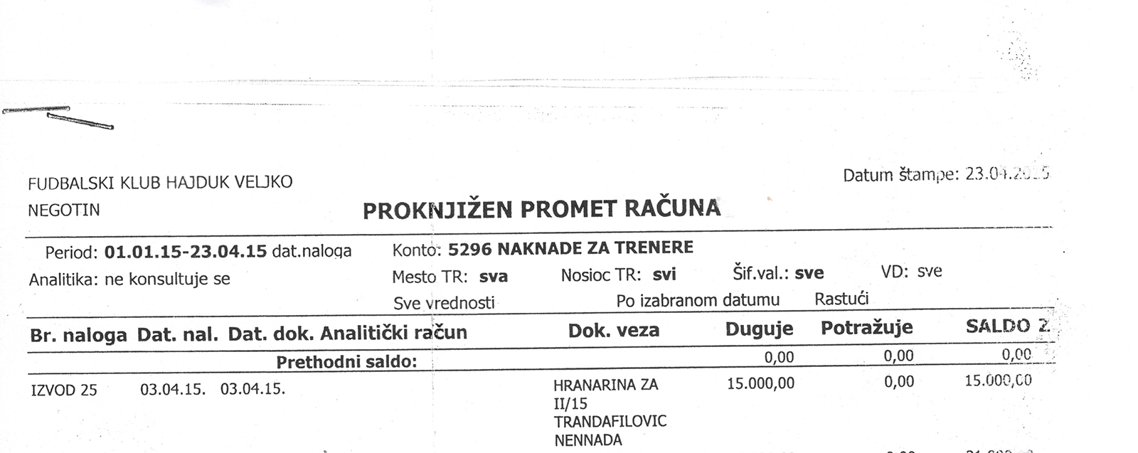 Međutim, ostaje nejasno kako je Trandafirović mogao dobijati naknade za trenere odnosno hranarine? Uzmimo za primer i podatak da Trandafirović nije tokom takmičenja posedovao potrebnu trenersku licencu kojim bi i zvanično bio na klupi u ulozi trenera, pa je bio prinuđen da neko drugi "pokriva" to upražnjeno mesto. Upravo zbog toga, sadašnji član Opštinskog veća i bivši trener Hajduka, često se nalazio u ulozi fizioterapeuta, predstavnika kluba... Ali nikada nije mogao da u protokolu zauzme mesto trenera za koje i prima 15.000 dinara u vidu hranarine! Sve ovo pokazuju i dokumenti.