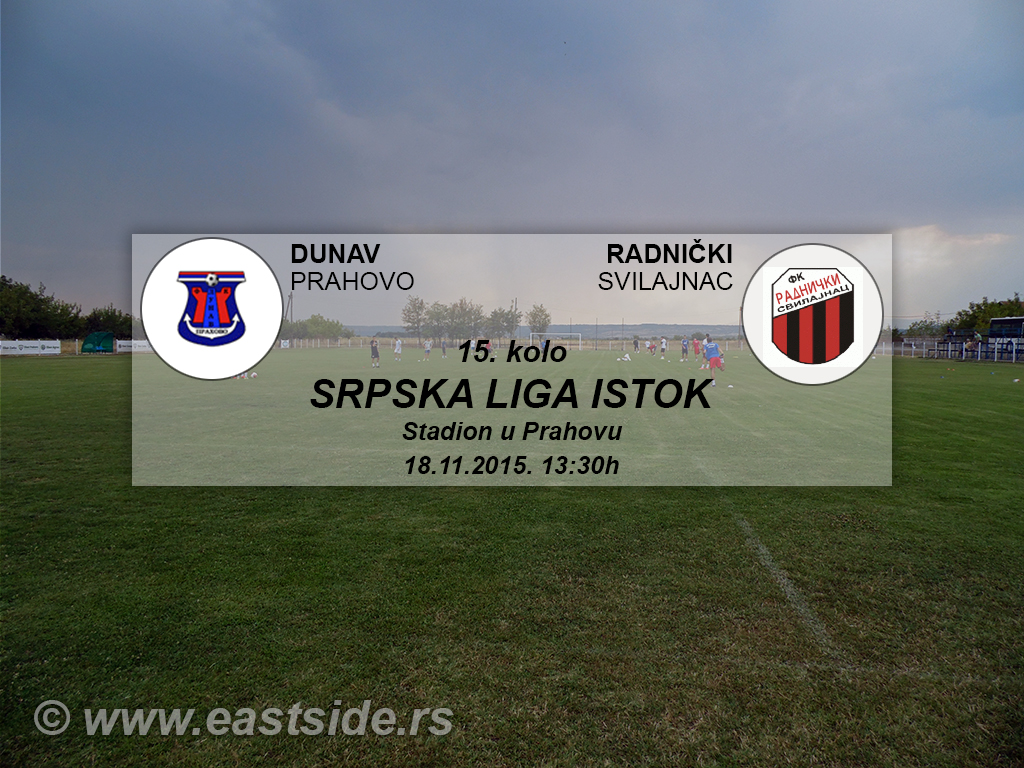 Autor Veljko DimitrijevićFudbaleri Dunava iz Prahova odigraće danas svoj petnaesti ligaški meč u okviru Srpske lige Istok, a protivnik će im biti ekipa Radničkog iz Svilajnca. Utakmica je prvobitno bila zakazana za subotu, 21. novembar, ali je uz saglasnost obe strane termin odigravanja pomeren za 18. novembar, sa početkom od 13 časova i 30 minuta.