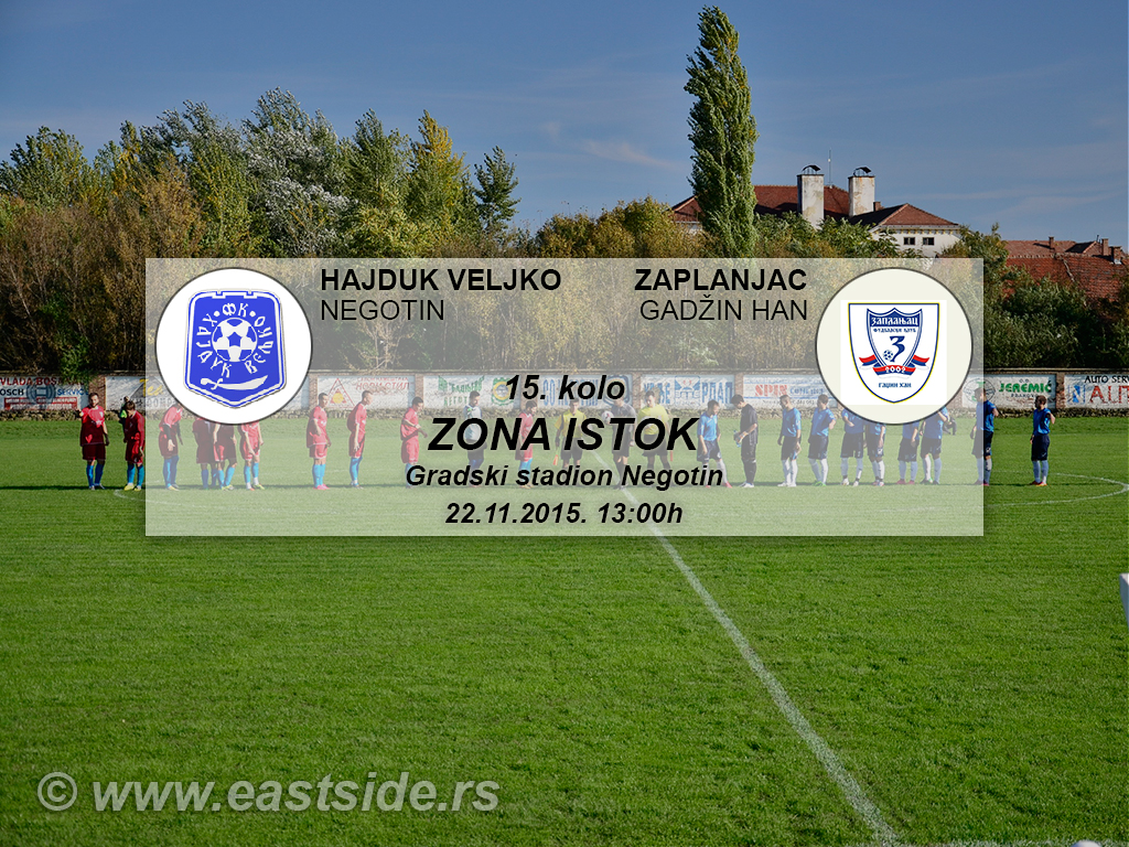 Utakmica između timova Hajduk Veljka i Zaplanjca odigraće se u nedelju 22. novembra na gradskom stadionu u Negotinu, od 13 časova.