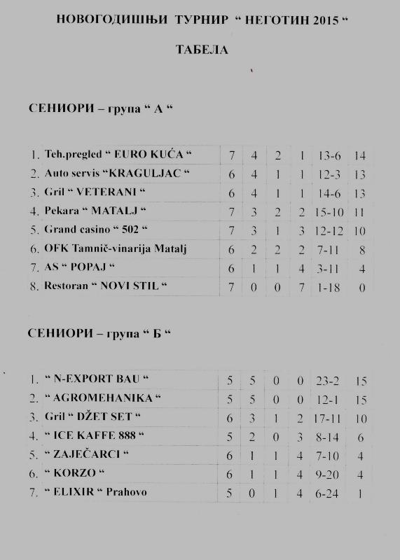 Autor Predrag BalaneskovićPoznati su četvrtfinalisti u seniorskoj konkurenciji na Novogodišnjem turniru u Negotinu. Danas ljubitelji malog fudbala u Negotinu mogu očekivati okršaje u borbi za prvo mesto ali i još po koji zanimljiv susret.