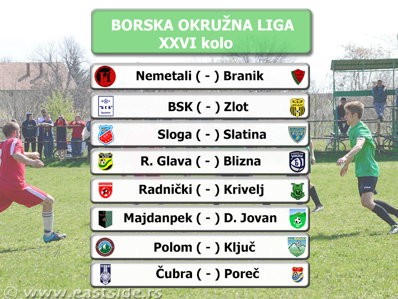 BSK iz Bukovča nakon pet vezanih pobeda želi da nastavi sa ovim trijumfalnim nizom, a ove nedelje dočekuje veoma dobru ekipu Zlota. Sa drug strane Sloga iz Kobišnice ne briljira u poslednje vreme ali velika želja da se na kraju prvenstva nađe ispred „komšija“ iz Bukovča ne jenjava. Fudbaleri Sloge dočekuju odličan sastav tima iz Slatine. Branik iz Štubika u borbi za opstanak pred sobom ima ozbiljno gostovanje ekipi Nemetala, takođe ekipi kojoj je svaki bod značajan ne bi li izborila opstanak. Čubra, još jedan davljenik iz naše opštine ima težak zadatak pred sobom. Čubarci dočekuju tim Poreča a za opstanak neophodna im je pobeda.