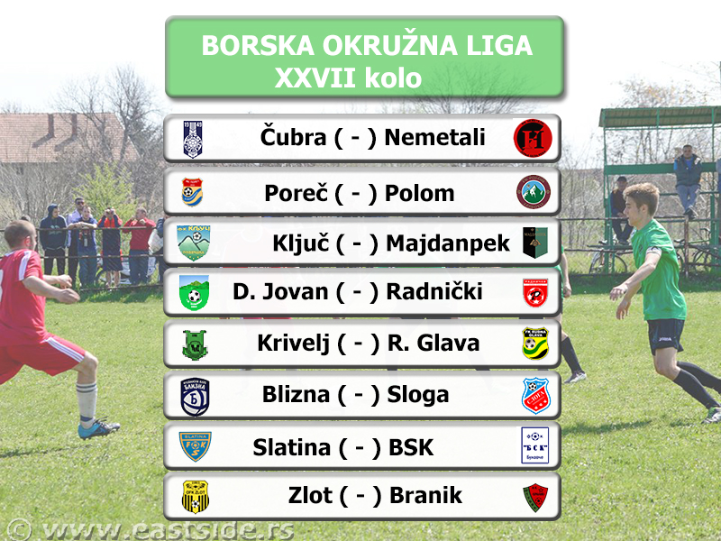 Čubarci imaju zadatak da pobede Nemetale u borbi za opstanak, dok će Deli Jovan iz Sikola u meču bez nekog većeg značaja dočekati Radnički iz Klokočevca. Odličan niz BSK-a od šest uzastopnih pobeda može se nastaviti u ovom kolu, ali pred sobom imaju težak zadatak jer gostuju odličnoj ekipi Slatine koja se trenutno nalazi na drugom mestu Okružne lige Bor.
