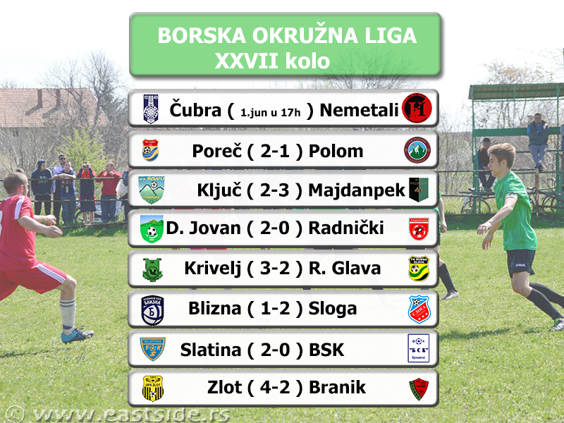 Autor Predrag BalaneskovićPrethodnog vikenda odigrano je nekompletno 27. kolo Okružne lige Bor, a danas će se odigrati preostala utakmica između Čubre i Nemetala.