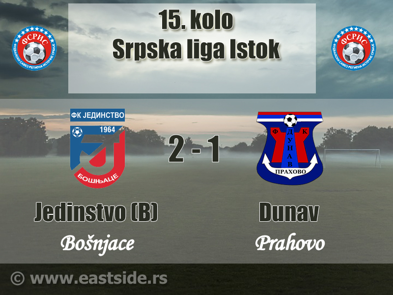 Autor East SideFudbaleri Dunava iz Prahova u poslednjem kolu jesenjeg dela sezone poraženi od Jedinstva Bošnjace rezultatom 2:1. Dunav prvi deo sezone završio na desetom mestu sa 20 bodova.