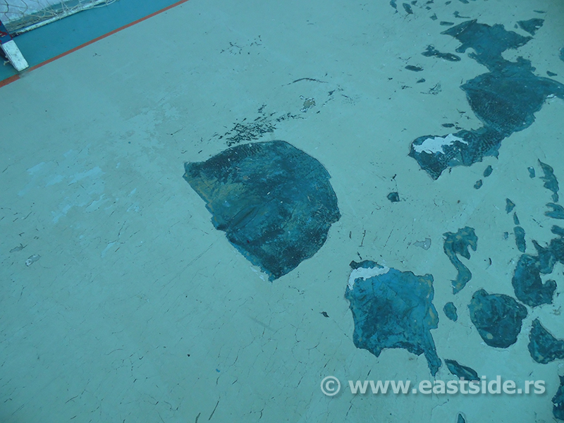 Najkritičnija je trenutno podloga, koja je oštećena na pojedinim delovima zbog povlačenja koševa i često klizava usled kondenzacije.