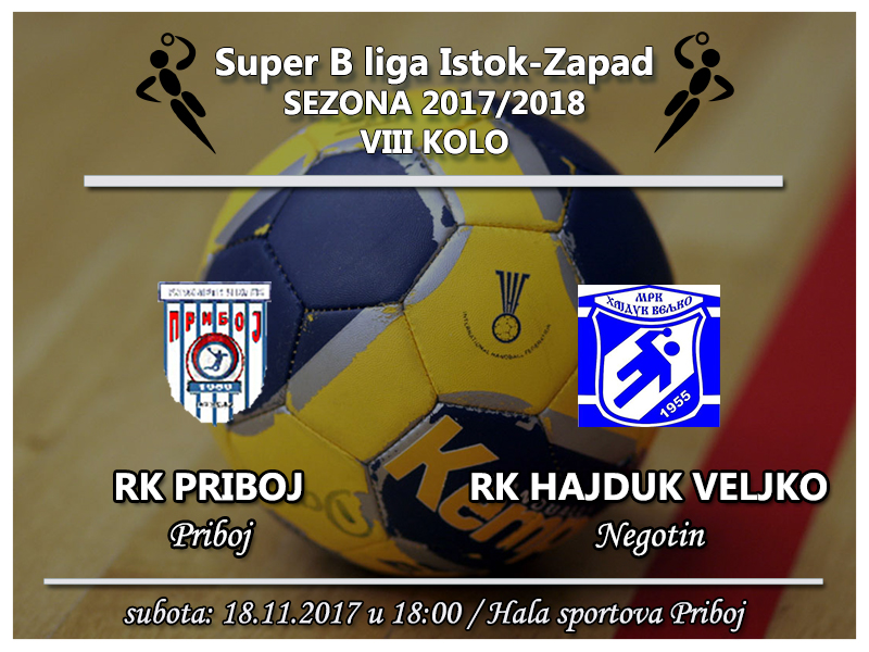 Autor Bojan ŽivanovićRukometaši Hajduk Veljka u 8. kolu Super Blige istok-zapad, gostovaće sutra u Priboju, gde ih dočekuje istoimena ekipa, dok će negotinske rukometašice u 5. kolu Druge lige Morava gostovati u Boru. Druga muška ekipa u 7. kolu Druge lige Istok sutra od 19 sati u Hali sportova u Negotinu dočekaće ekipu Jagodine.