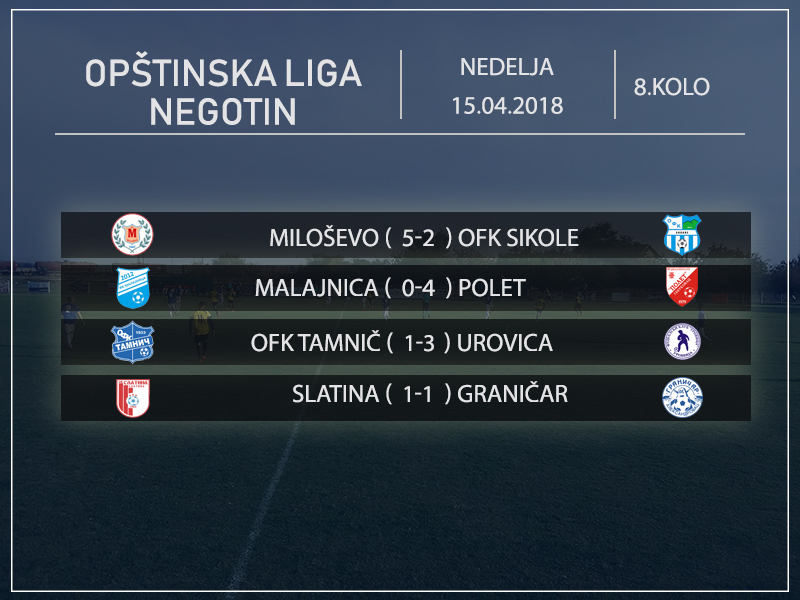 Aktuelni prvak Opštinske lige Negotin, Graničar iz Aleksandrovca, iznenadio je vodeću Slatinu i „otkinuo“ joj bod na otvaranju prolećne sezone. Slatinci su prvi deo sezone završili sa maksimalnih sedam pobeda i sa 21 bodom ušli u nastavak borbe za titulu, ali su već u prvom kolu ostali bez dva boda. Ekipa iz Aleksandrovca, koja je u prvom kolu poražena na svom terenu od Slatine sa ubedljivih 3:0, na neki način se revanširala jesenjem prvaku.