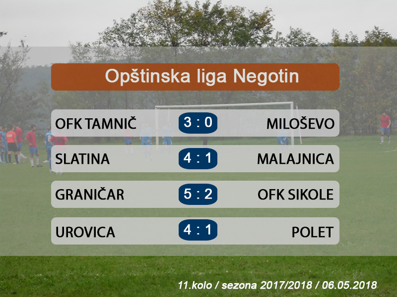 Autor Bojan ŽivanovićSlatina, Graničar i Urovica sigurni u 11. kolu Opštinske lige Negotin. Miloševo nije otputovalo u Tamnič. U sredu utakmice 12. prvenstvenog kola.